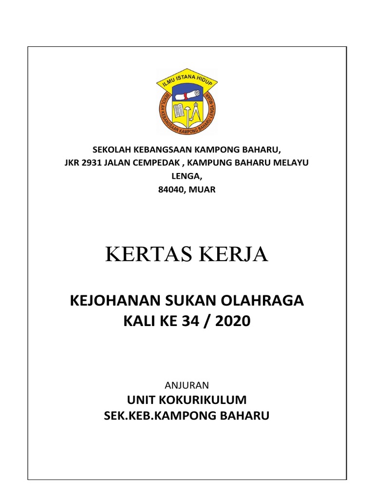 Muka Depan Kertas Kerja Olahraga 2020 Pdf